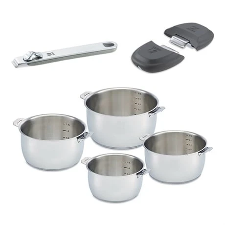Le set de 4 casseroles Select fait partie de la nouvelle gamme de cuisson de Beka en acier inoxydable. Le set est composĂ© de 4 casseroles de 14, 16, 18 et 20 cm de diamètre. Les casseroles possèdent un marquage intĂ©rieur des capacitĂ©s pour une lecture simple et pratique des quantitĂ©s. Très solide, l’acier a une durĂ©e de vie presqu’illimitĂ©e. Le set de 4 casseroles Select est compatible tous feux dont induction et au four. Nettoyage facile au lave-vaisselle.