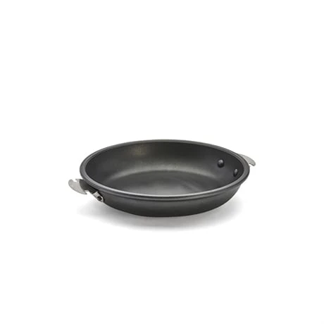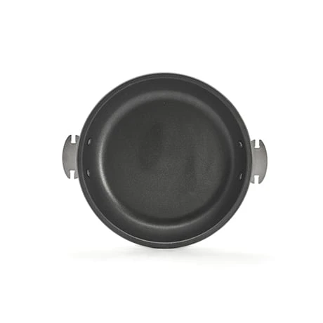 La poĂȘle est dotĂ©e de 2 embases solidement rivetĂ©es au corps pour ĂȘtre associĂ©e Ă la poignĂ©e amovible en fonte dâinox Loqy.