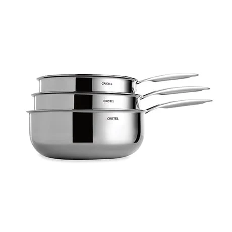 La casserole Castel’pro de Cristel est composĂ©e d’un corps en inox 18/10 Ă la finition brillante. PensĂ©e en collaboration avec des professionnels de la cuisine, la collection castel’pro est composĂ©e d’ustensiles au corps thermo-diffuseur 5 couches 5-Ply, avec des graduations intĂ©rieures tous les 0,5 L. Les 2 couches d’inox contiennent 3 couches d’aluminium pour une diffusion optimale de la chaleur. Grâce Ă cette technologie, la montĂ©e et la descente en tempĂ©rature est très rapide. La poignĂ©e est en fonte d’inox rivetĂ©e. Les ustensiles sont compatibles tous feux dont l’induction; passent au four, au grill et au lave-vaisselle.Â
